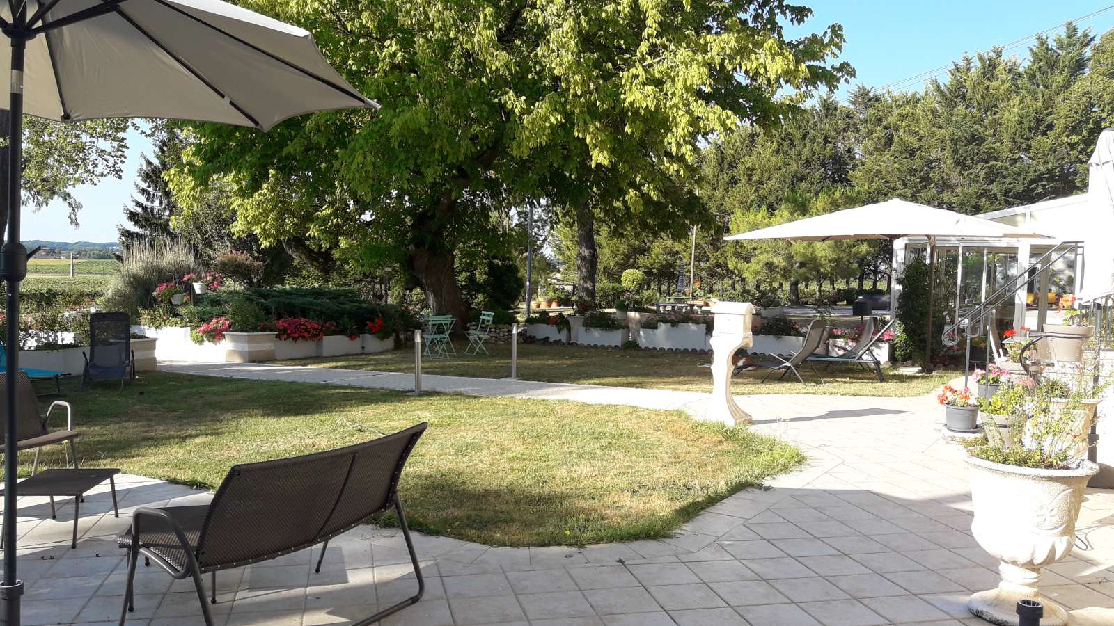 L'extérieur commun dominant les vignobles vous offrira quiétude et calme. De nombreuses possibilités de randonnées s'offrent à vous au départ de la propriété. Les propriétaires seront ravis de vous faire découvrir leur métier : la viticulture.