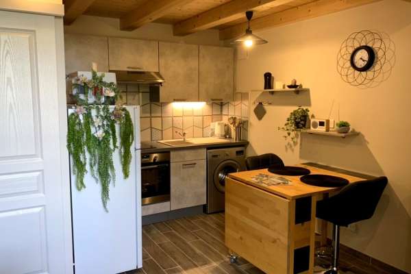 Au cœur d'un domaine viticole, charmant appartement aménagé au premier étage d'une belle maison de pays entièrement rénovée avec goût. La partie nuit vous offrira un atypisme plein de charme avec ses poutres basses et cette agréable mezzanine. L'extérieur commun dominant les vignobles vous offrira quiétude et calme. De nombreuses possibilités de randonnées s'offrent à vous au départ de la propriété. Les propriétaires seront ravis de vous faire découvrir leur métier : la viticulture. Situé à seulement 8kms du centre ville de la station thermale de Jonzac où vous trouverez de nombreux commerces de proximité, le casino ainsi que le complexe aqualudique des Antilles de Jonzac. Petit plus, nous bénéficions de la fibre.