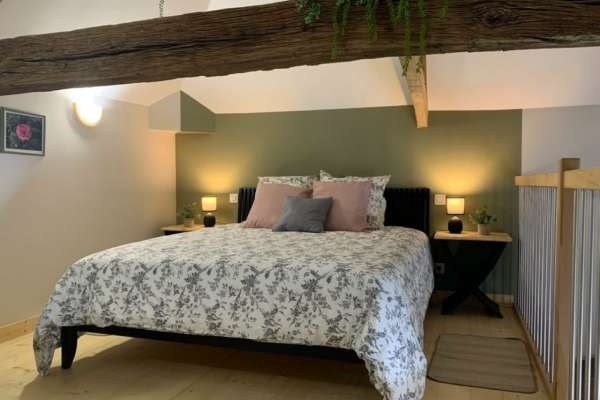 La partie nuit vous offrira un atypisme plein de charme avec ses poutres basses et cette agréable mezzanine.