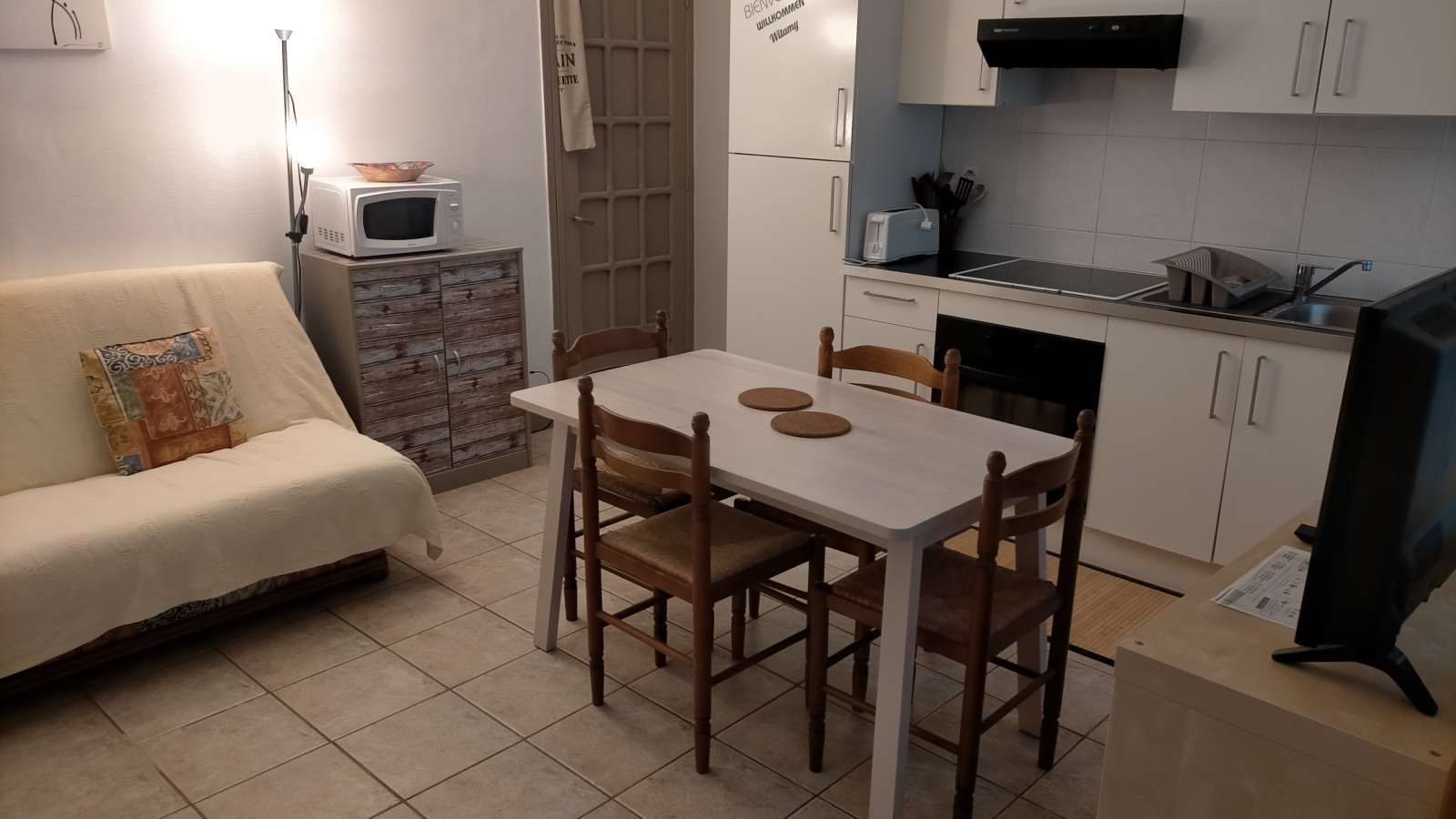 Appartement, comprenant un coin cuisine équipé four, plaque de cuisson, réfrigérateur congélateur grille pain cafetière bouilloire un micro-ondes, un séjour avec télévision, un canapé convertible, une chambre avec un lit de 140, une armoire plus une colonne de rangement