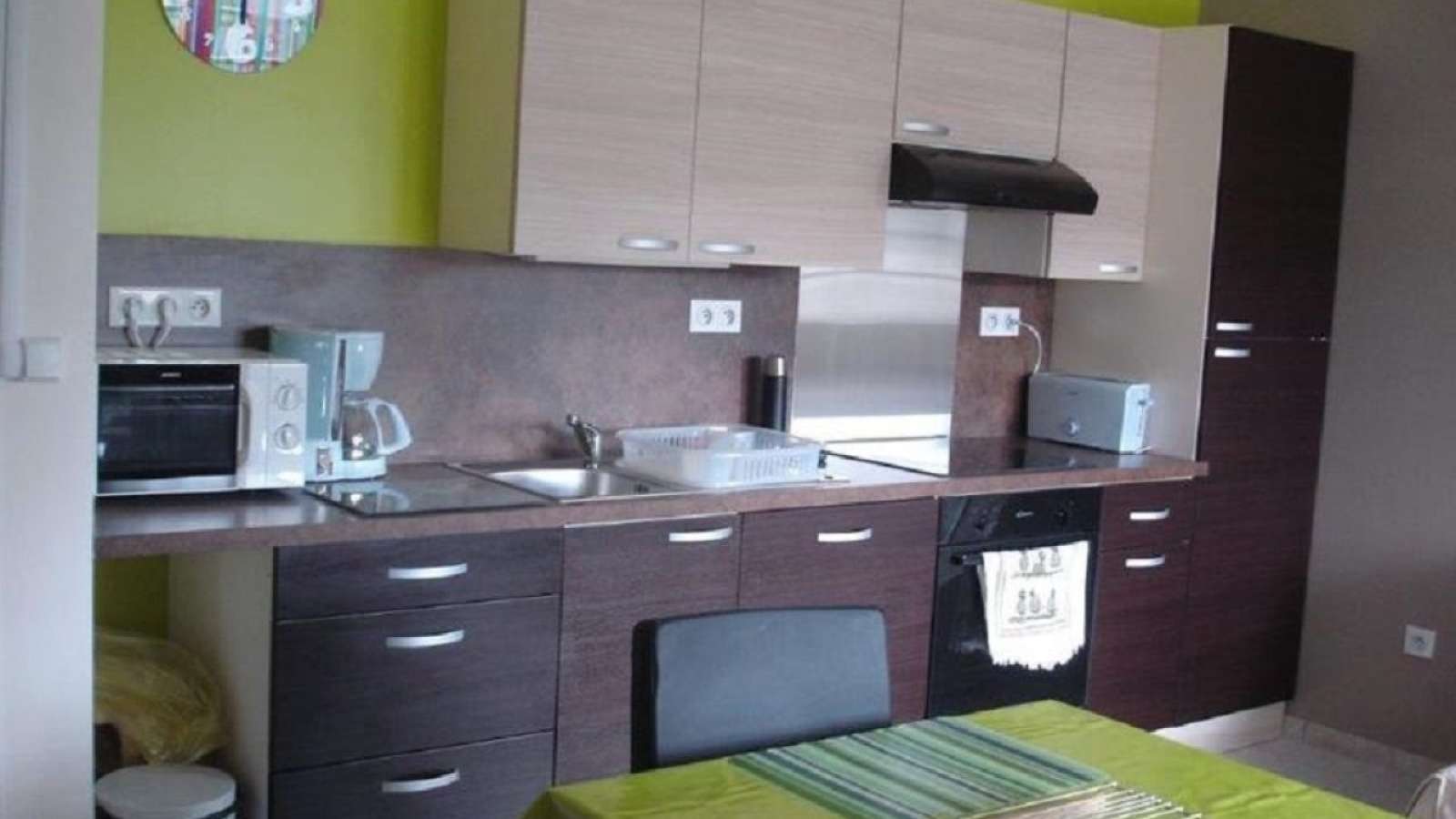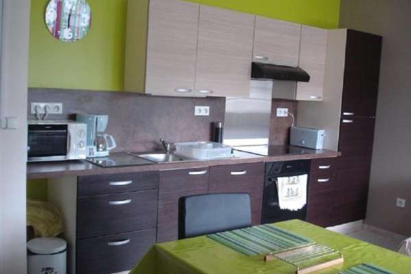 Comprenant un coin cuisine équipé avec entre autres un micro-ondes, un lave-vaisselle, une plancha.