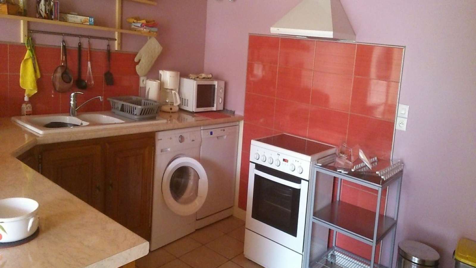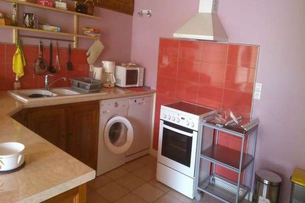 Maison comprenant, au rez-de-chaussée une cuisine équipée avec entre autres un lave-vaisselle, un micro-ondes.