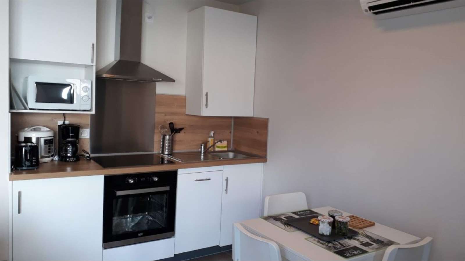 Résidence neuve au calme et emplacement idéal composée de 4 appartements tout confort et tout compris (draps et serviettes de toilette fournis). En coeur de ville, à 5 minutes à pied du marché ou de la place du château. Dans la chambre lit double de 180 séparable en 2 lits de 90. Emplacement voiture privé.