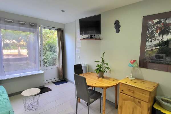 Appartement de plain pied neuf meublé tout confort à 900m de la station thermale et proximité immédiate de la gare de Jonzac. PASSAGE NAVETTE Lit en 160 électrique ou 2 fois 80. four, micro onde, lave vaisselle, lave linge, frigo, congélateur, tv, douche a l italienne... Wifi avec fibre. Aucune marche dans le logement. Une borne de recharge électrique publique est disponible à moins de 50m