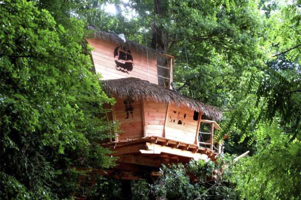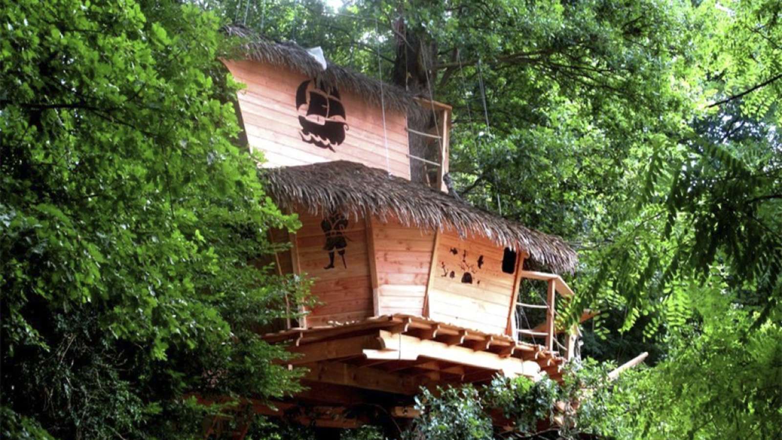 N'avez-vous jamais rêvé de dormir, perché dans une cabane dans un arbre ? Cette expérience insolite est aujourd'hui possible à Pons, sur le magnifique site du Château d'Usson (Le Château des Énigmes). Cinq cabanes vous attendent pour une nuit magique, suspendues entre ciel et terre. Nos cabanes sont perchées entre 5 et 11 mètres de hauteur et peuvent accueillir les petits comme les grands aventuriers. Trois cabanes "couple" vous permettront de passer une nuit en amoureux, bercés par le bruissement des feuilles. Deux cabanes "famille" accueillent les familles jusqu'à cinq personnes et les enfants à partir de deux ans. Les cabanes sont sans eau mais équipées d’électricité et de toilettes sèches. Au petit matin, votre petit-déjeuner sera déposé au pied de votre arbre, et il ne vous restera plus qu'à le hisser pour le déguster sur votre terrasse, tout en admirant le ballet matinal des écureuils. Un bloc sanitaire équipé d'une salle d'eau sont accessibles 24h/24. Une aventure originale, au cœur de la nature, idéale pour resserrer les liens, en couple ou en famille ! Nous proposons un panier pique-nique copieux qui régalera les petits comme les plus grands. Tous nos paniers sont préparés par nos soins avec une sélection de produits locaux Bon plan : les entrées pour les parcours de jeux du Château des Énigmes sont à tarif préférentiel pour tous nos hôtes en cabane ! Les cabanes dans les arbres ont reçu en 2013 le Grand Prix Charente-Maritime du Développement Durable. La cabane des moussaillons est une cabane dans les arbres pour les familles perchée à 5m de hauteur sur un chêne de plus de 200 ans. Vous grimperez très facilement à bord de ce magnifique bateau pirate grâce à un simple escalier de bois. Cette cabane dans les arbres, tout droit sortie de nos rêves d’enfant, peut accueillir jusqu’à cinq matelots (petits mousses à partir de 2 ans)