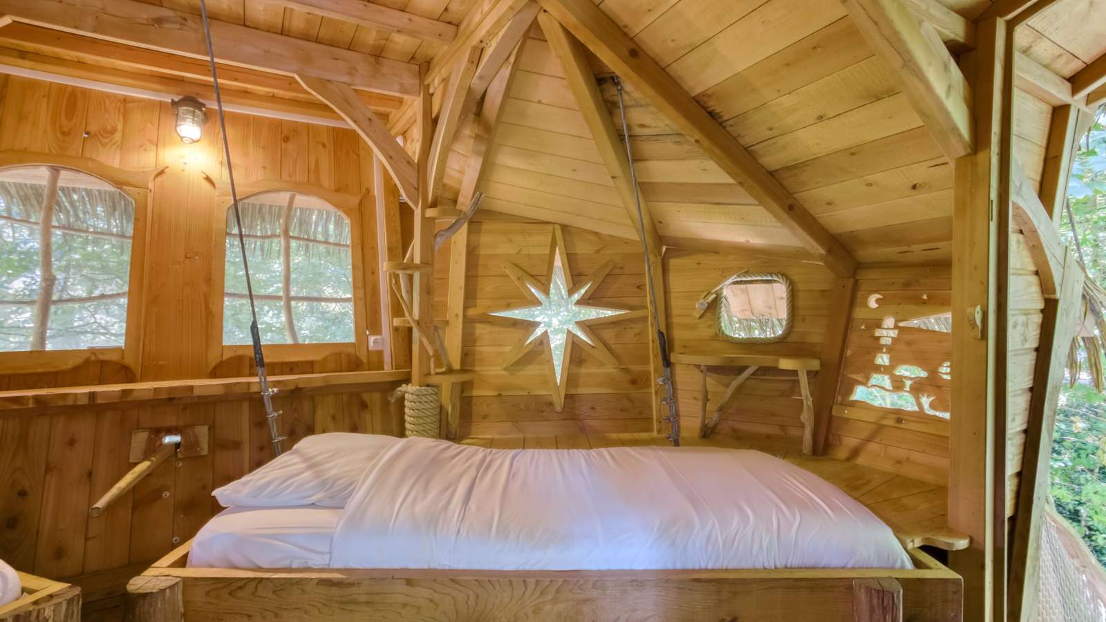 La cabane des moussaillons est une cabane dans les arbres pour les familles perchée à 5m de hauteur sur un chêne de plus de 200 ans. Vous grimperez très facilement à bord de ce magnifique bateau pirate grâce à un simple escalier de bois. Cette cabane dans les arbres, tout droit sortie de nos rêves d’enfant, peut accueillir jusqu’à cinq matelots (petits mousses à partir de 2 ans)