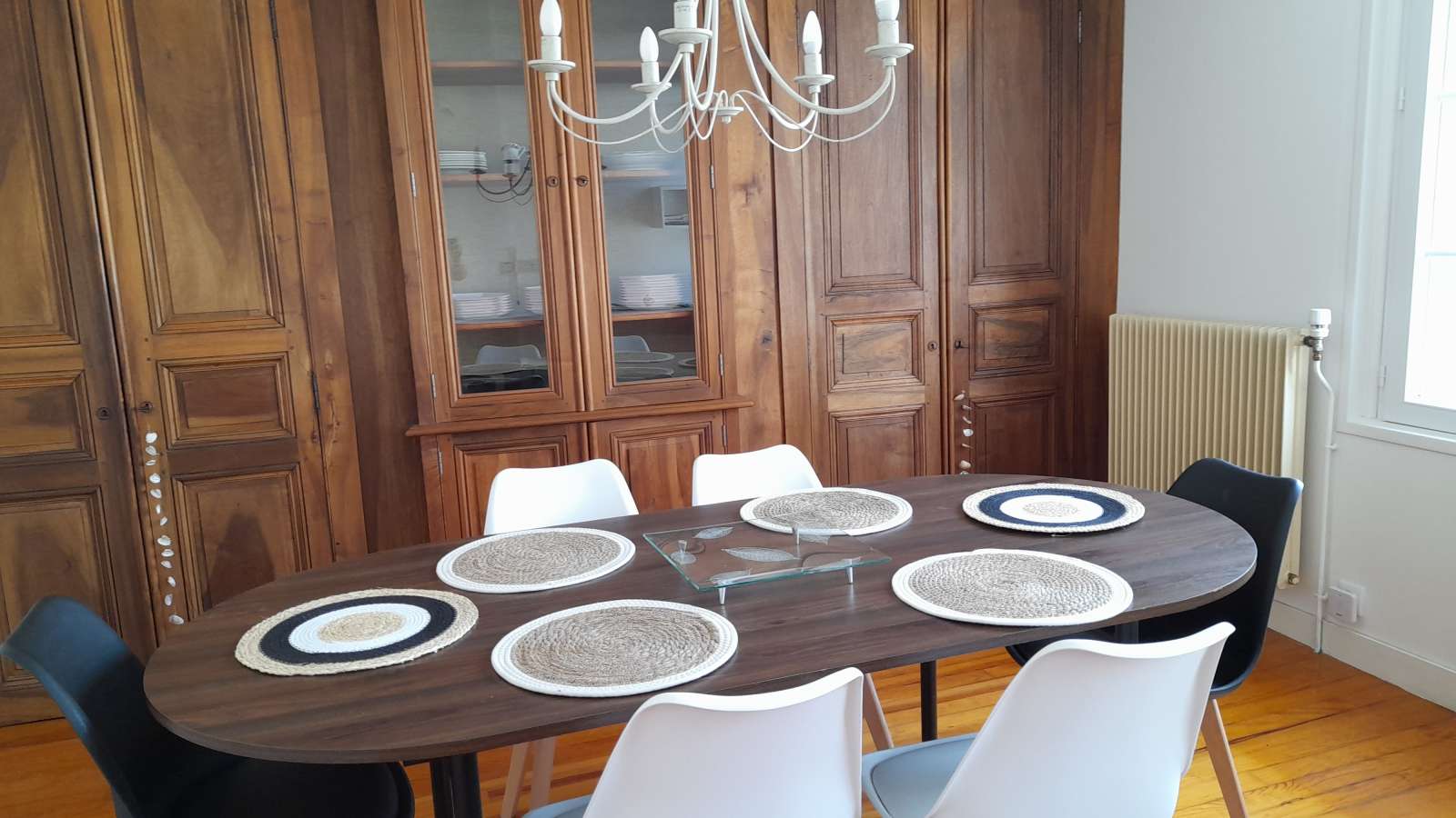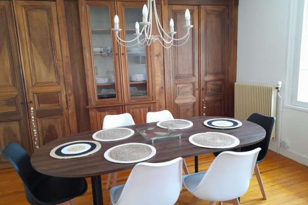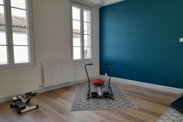 Maison tout confort, de trois chambres dans le bourg d'Archiac avec petit jardin et véranda. Maison de village près du centre du bourg d'Archiac, avec vue sur la campagne environnante, toute équipée. Idéale pour profiter de vacances en famille ou entre amis. La location comprend 3 belles chambres claires et lumineuses, avec vue sur la plaine, deux salles d'eau, deux toilettes, une cuisine équipée : four, plaques de cuisson, réfrigérateur-congélateur et petit électroménager, une buanderie, un séjour avec un smart TV, une salle de sport (réservée aux adultes). Wifi. Attenant au petit jardin, une véranda qui permet de profiter des inter saisons, situé dans dans un quartier calme, proche des commerces. Marché à Archiac le samedi matin, piscine municipale ouverte en été. Jonzac est à 13 kilomètres, Cognac à 20 kilmètres.