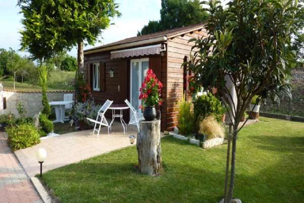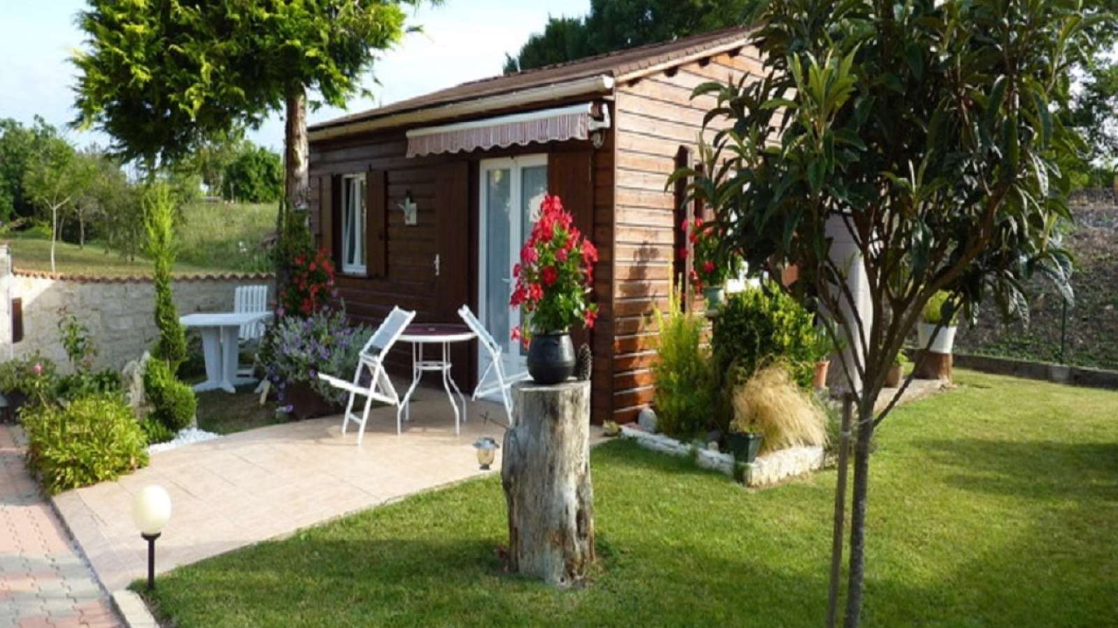 Chalet en bois au rez-de-chaussée situé à 2km de Jonzac. À l'extérieur, jardin avec terrasse et mobilier. Ce chalet comprend un coin cuisine équipé avec entre autres un micro-ondes, un mini-four, une cafetière, un lave-vaisselle, un séjour avec canapé convertible, une télévision écran plat, une chambre avec un lit de 160, accès Wifi.