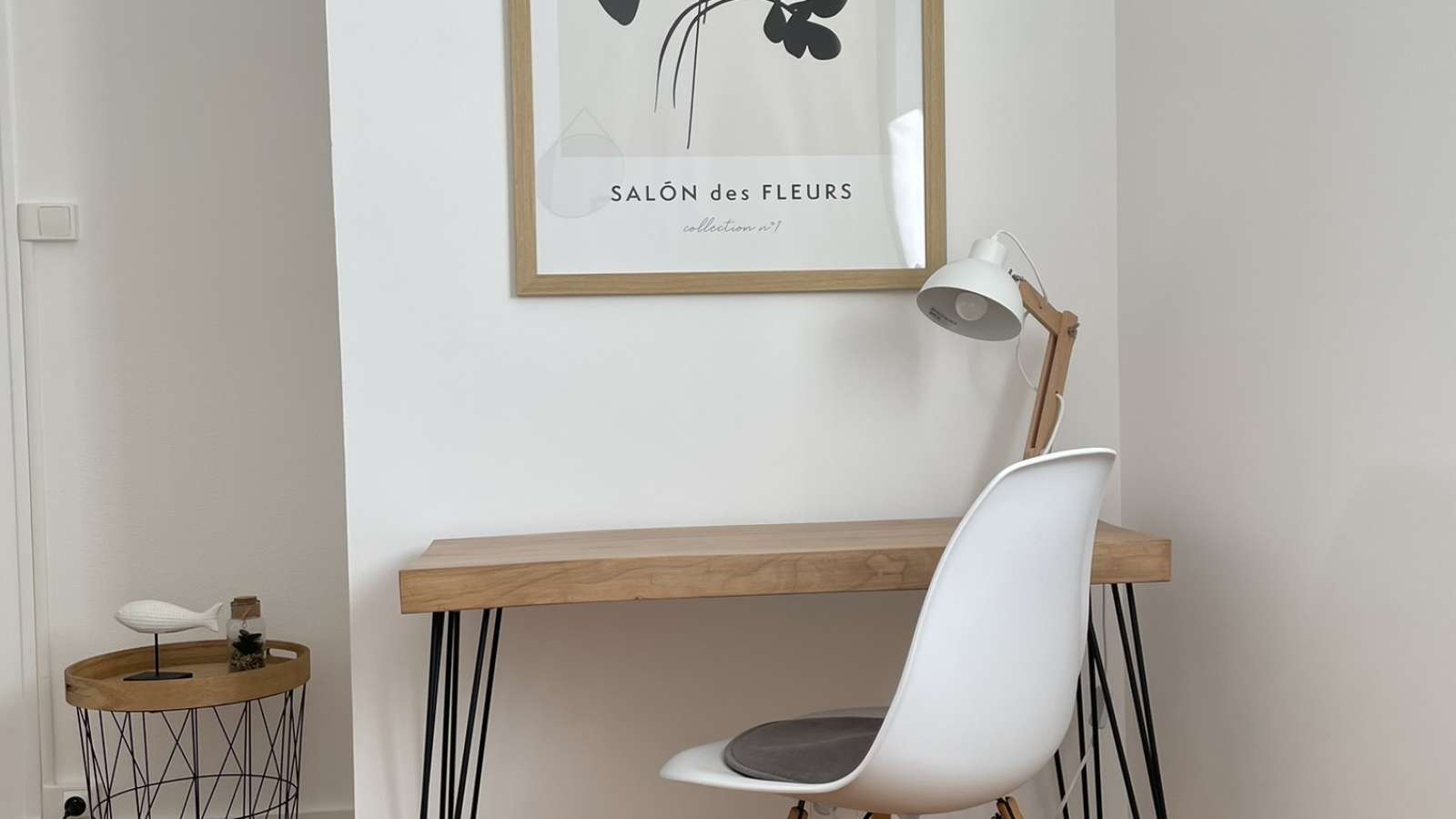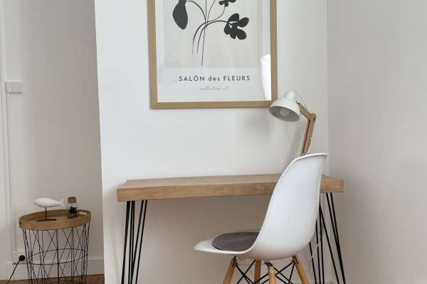 Grande chambre lumineuse avec placard et coin bureau/télétravail.