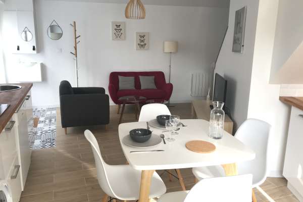 Entièrement rénovée en 2021, maison de ville lumineuse, confortable et très bien équipée, à 700 mètres des thermes, proximité immédiate des sentiers piéton/vélo menant au château, aux Antilles, à la base de loisirs et à 100 mètres du centre-ville et de ses commerces.