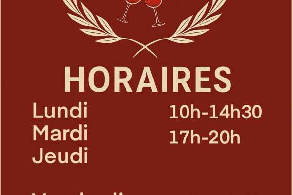Du 01/01 au 31/12 le lundi, mardi et jeudi de 10h à 14h30 et de 17h à 20h. Le vendredi de 10h à 14h30 et de 17h à 23h30. Le samedi de 11h30 à 23h30.
