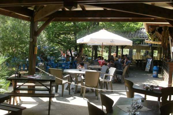 Dans une ambiance tropicale, les convives peuvent déguster midi et soir des saveurs variées en terrasse au bord du lac. Des rafraîchissements sont également proposés la journée.